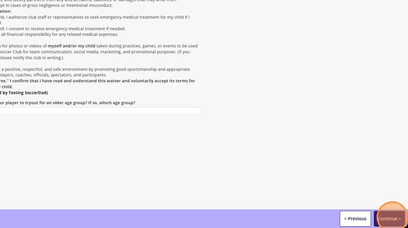 8. If you'd wish to have your player "Play Up" to an older division, please list which division here.