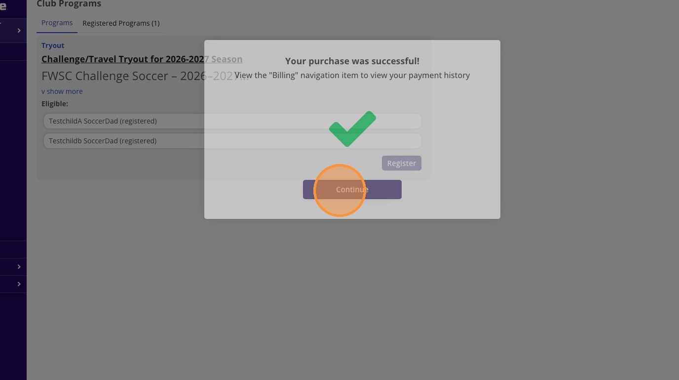13. Notice on the main "Club Programs" page, you will now see each eligible player's registration status for that program.